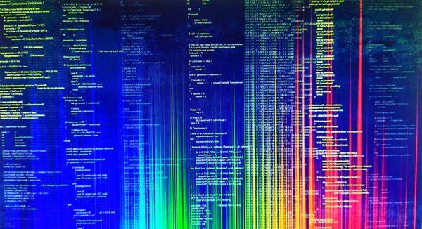 Zahlen und Buchstaben laufen in Blöcken über den Bildschirm.