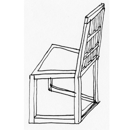 und darauf streng ästhetischeinen Stuhl aus Rahmen,