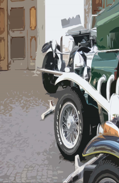 Während die weiteren Autos wohl die nobelste und kreativste Ahnengalerie des KFZ-Designs vertreten, scheinen deren Chauffeure einem surrealen Film entsprungen zu sein.
