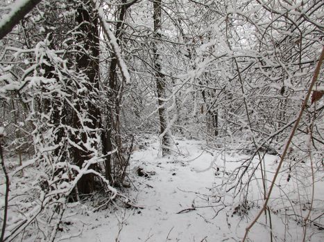 Gestrüpp auf der Schlangeninsel im Schnee am 31. Januar 2021